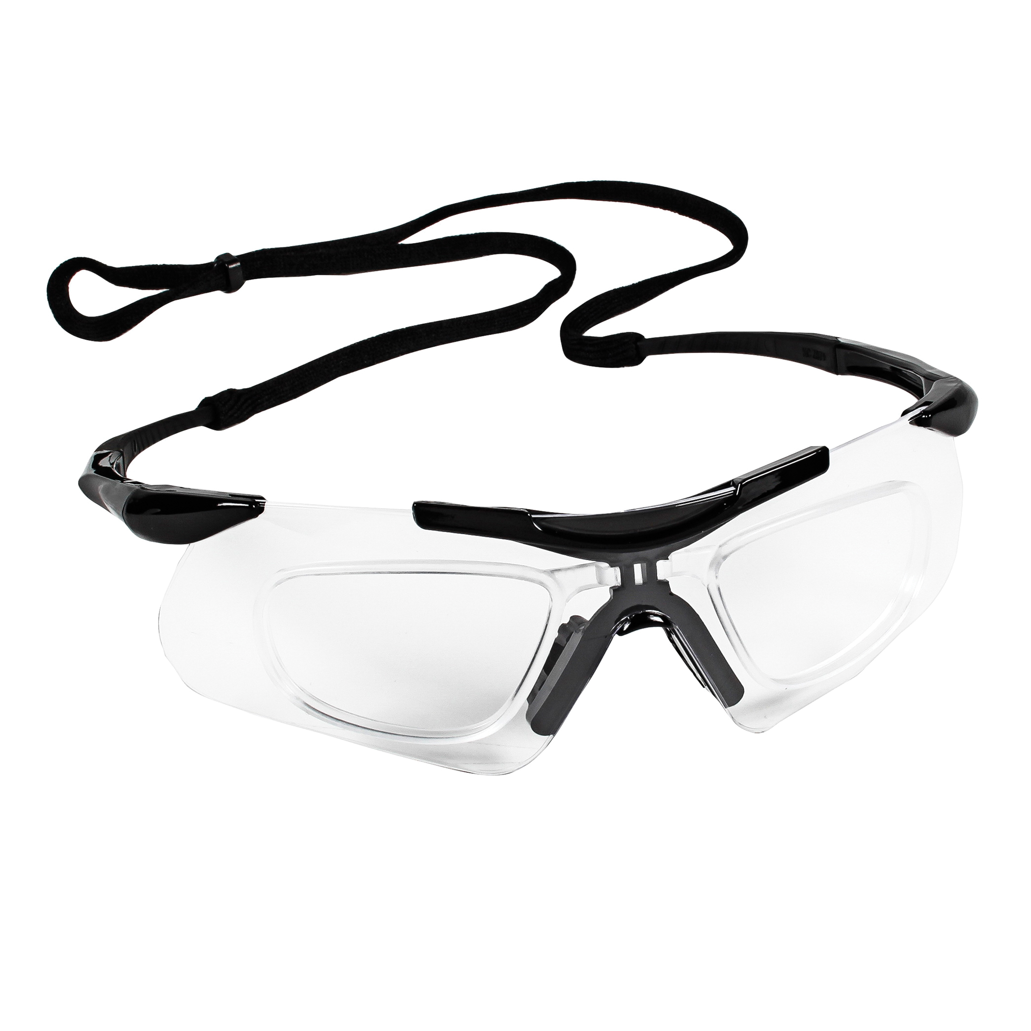 KleenGuard 38503 V60 Nemesis Safety Glasses With Neck Cord Nylon RX Inserts, Anti-Fog, Clear Lens, Frameless Frame, Black, Nylon Frame, Polycarbonate Lens, ANSI Z87.1+2010
